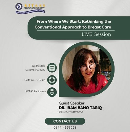 On December 3rd, the Khaldunia Institute of Technology and Applied Sciences (KITAAS) conducted an enlightening awareness session focused on educating students and healthcare professionals about modern perspectives on breast health and the vital role of early detection.