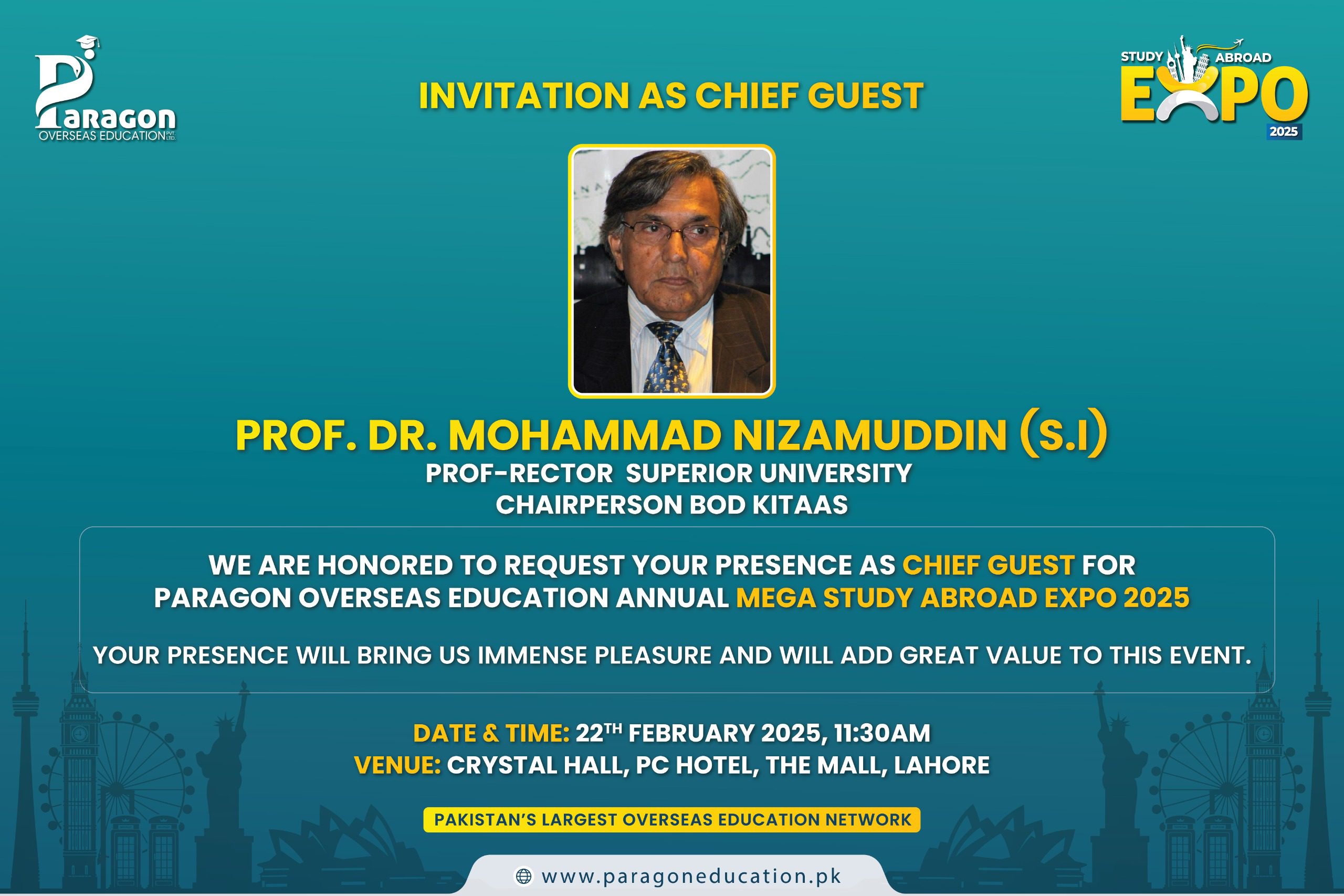 Dr. Nizamuddin has previously served as the chairman of the Punjab Higher Education Commission, Pakistan (PHEC) and as Vice Chancellor of the University of Gujrat as well.
